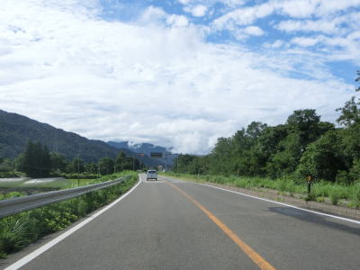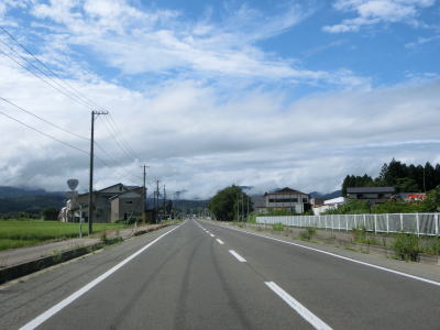 | 緩やかな右カーブを曲がって秋田r51須川交差点を通過して須川橋を渡る。橋の下を流れているのは雄物川ではなく支流の高松川である。須川橋以降も平坦で直線的な2車線道路が続いている。センターラインが消えている区間もあるが快走可能である。 | ||