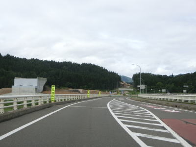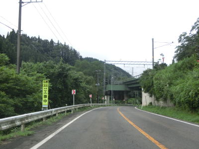 | 上院内交差点からは雄勝川の谷筋を走っており沿線には集落が存在していない。JR奥羽本線の橋梁を2ヶ所でくぐっており、同じ谷筋の中を並走している。長い上り勾配だが線形は良く走りにくさは感じない。 | ||