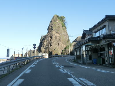 | JR羽越本線の上り線とともに海岸線沿いを走っていると新鵜泊トンネルをくぐる。2018年7月18日に供用された新しいトンネルで、このトンネルの開通によって新潟県内の酷道区間が消滅した。名称に“新”と付いているが、鵜泊隧道は別の場所に存在しており現在も現役のトンネルである。 | ||