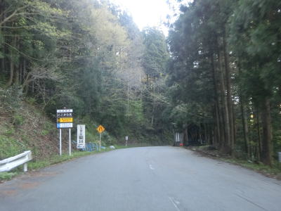 | 164.酷道区間が始まる | 165.乗用車同士の離合も難しい | 166.杉林の中を走る |