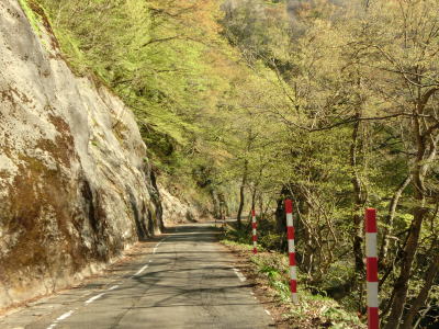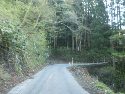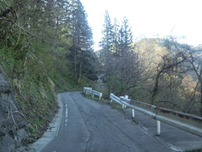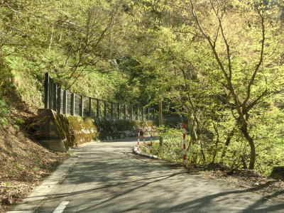 | 道幅がさらに1.0車線幅にまで狭くなってしまう。待避所のようなものは設置されておらず、対向車が現れると離合する場所が限られてしまうので厄介である。交通量は少ないが、それでも皆無とは言えないので気を遣った走行を強いられる。 | ||