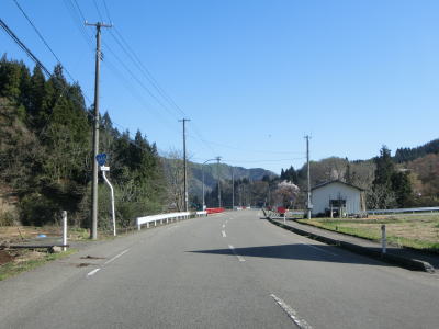 | 関川集落内は1.5車線と狭く舗装状況も良いとは言えない。少しだけ鼠ヶ関川に沿って走った後に下りから上りに転ずる。市道との交差点を過ぎるとセンターラインが復活して2車線道路となる。集落を通り過ぎてからも緩やかな上り勾配の2車線道路を走る。 | ||