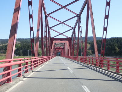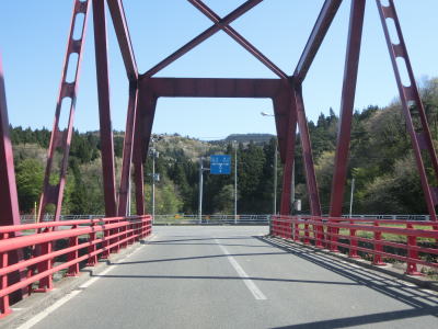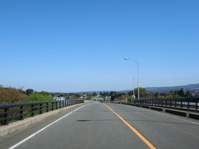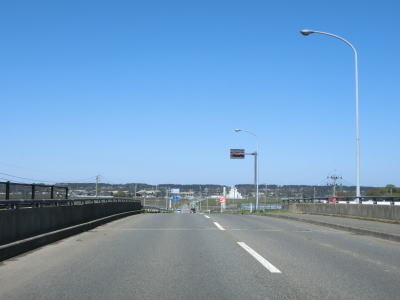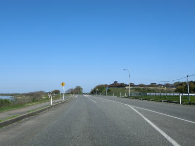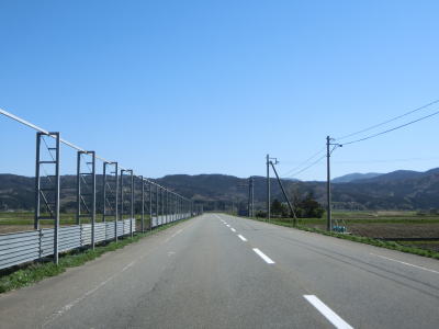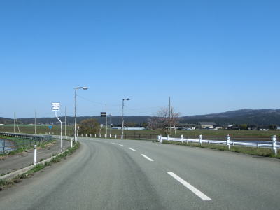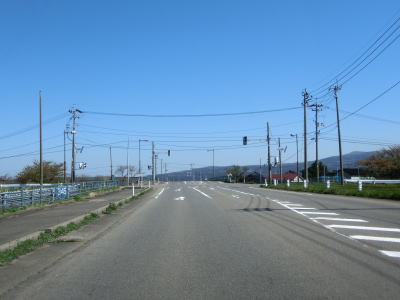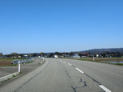 | 堤防上を走っていると山形r117との交差点を通過する。最上川に架かるr117の橋(庄内橋)は最上川橋と同様に歩道がなく車線幅が狭いため、少し上流に新たな橋が架橋工事中である。 r117交差点以降も最上川の堤防の上を快走する。山形r40交差点付近からは堤防から離れて水田の中を走るようになる。相沢川に架かる宝永橋の前後を除けばアップダウンもなく走りやすい道路状況である。 |