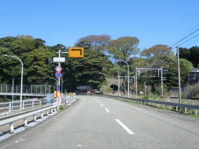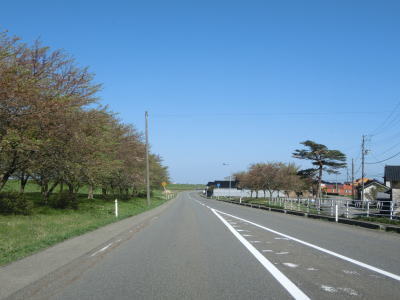 | 海岸線に沿って走っているとトンネルから出てきたJR羽越本線との並走状態となる。対面2車線道路と整備されており、内陸側で並走しているR7の旧道に該当すると思われる。 | ||