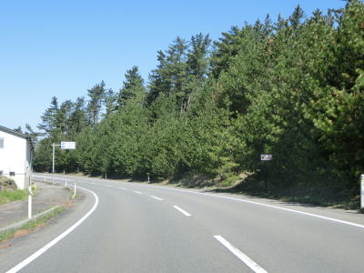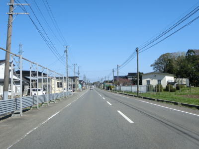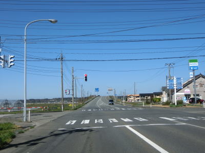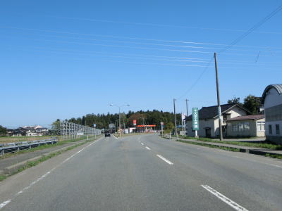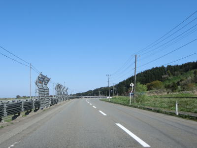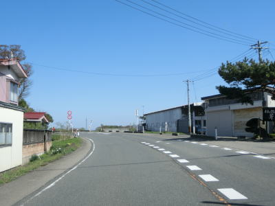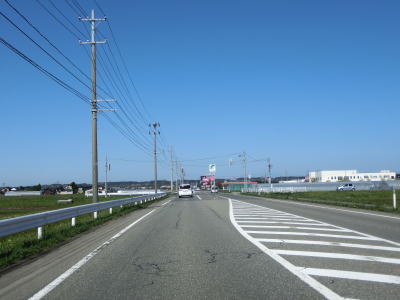 | 山形r353交差点からは上り勾配となり、左、右と緩やかなカーブを通過する。おそらくバイパスとして造られた道路と思われ、沿線にはほとんど家屋が存在しない。緩やかな勾配を下っていると津波浸水想定区域に入るが、海岸とは直線にして600m程度離れている。 | ||