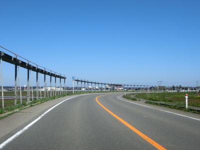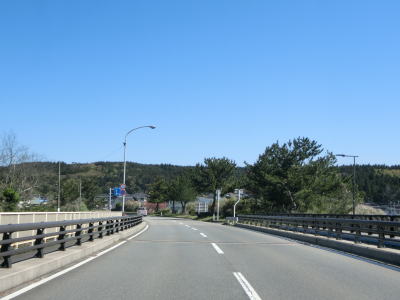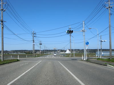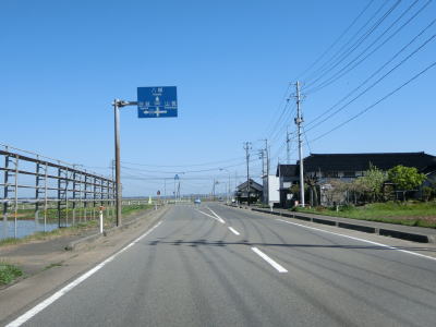 | そねた橋を渡り終えて左カーブを曲がっていると町道との交差点を通過するが、その町道がR345の旧道である。遊佐バイパスが終わってからも平坦で走りやすい2車線道路が続いている。左にカーブした後に西鳥海橋を渡り、その先で山形r353交差点を通過する。 | ||