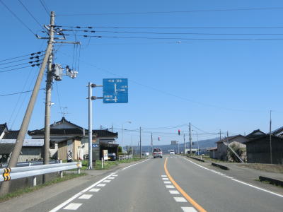 | 交通量が少なく流れの良い2車線道路を北上していると山形r352交差点を通過する。さらに少し走ると山形r367交差点を通過する。前方に見えている鳥海山がかなり大きく見えるようになる事からもかなり近付いているように思えるが、山頂との距離は20km程度ある。 | ||