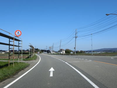 | 旧八幡町の中心部の手前で市道が2本交差している右カーブを曲がり、市街地の南端部を走っていると左カーブの直後に市道との交差点を通過し、その先でR344市条交差点を通過する。手前で交差している市道はおそらくR344の旧道と思われる。案内標識では直進の道路にR345のおにぎりが表記されているが、本来であればR344のおにぎりが表記されなければならないはずである。 | ||