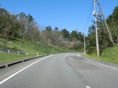 | 295.山形r353交差点以西は沿線に建物なし | 296.峠部分を越える | 297.津波浸水想定区域に入る |