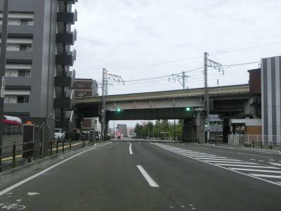 | 12.JR東北本線の貨物線 | 13.JR仙石線の苦竹駅の下を通過 | 14.周辺の建物が低層のものが中心になる |