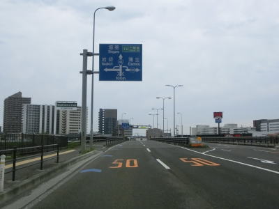 | 42.左側車線が減少 | 43.仙台塩釜港の出入口 | 44.沿線には商業施設が多い |
