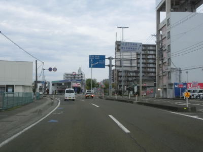 | JR仙石線の高架下の交差点を過ぎると左側車線がなくなり、以降は対面2車線道路になる。左カーブの先で交差点を通過するが、仙台塩釜港の出入口に当たる交差点のため右折する車両が多い。市街地からは離れているものの二桁国道との重複区間とあって沿線には商業施設が多い。 | ||