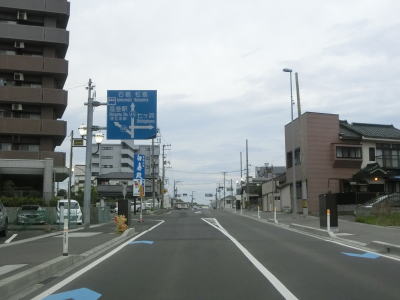 | 港町交差点からは4車線道路になって西の方角に進む。中の島交差点〜港町交差点間とは逆にこの区間はR45走行時は対面2車線道路であった。本塩釜駅のロータリーの南を通ってからJR仙石線の跨道橋をくぐった先の宮城r58海岸通り交差点を右折する。左側車線は直進右左折が可能で、どちらの車線からも石巻方面に右折できる。 | ||