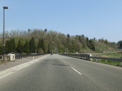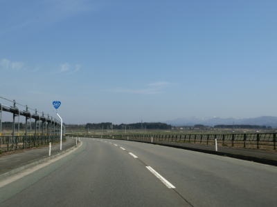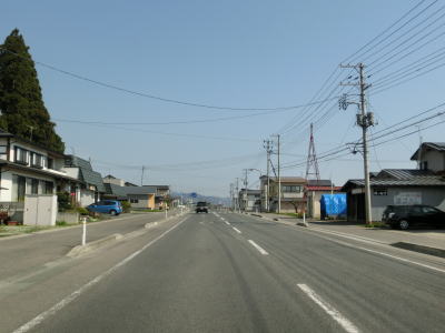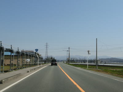 | 村山市に入ってからも長閑な風景の中を走り抜ける2車線快走路が続いている。千座川を渡って少し走ると山形r294交差点を通過する。この区間は東を並走している、家屋が建ち並ぶ間を通っている町/市道が旧道と思われる。 | ||