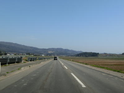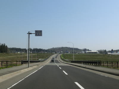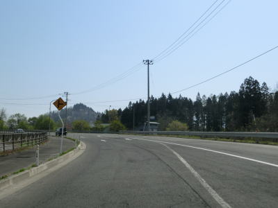 | 山形r121交差点以降は水田の中を走っており、左カーブの後に右に大きくカーブして進行方角を北東に変える。東北中央道の尾花沢ICを通過するが、南の大石田村山ICまでの区間は走行した日の直前の2018年4月15日開通している。 東北中央道の本線の下を通った直後にも跨道橋があるが、これはR13である。R347とは下川原交差点という、立体交差点として繋がっているが信号機は設置されていない。R347は直進して大崎・銀山方面に進む。 |