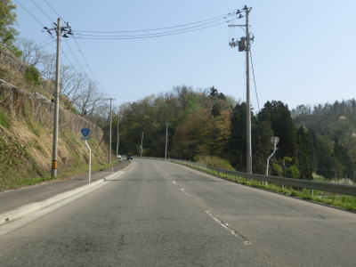 | 富並川橋を渡った後は平坦な状態となり、山形r36交差点を通過する。その後もアップダウン、勾配ともに非常に緩やかな2車線道路を快走していると市町境を通過して大石田町に入る。北村山広域農道との交差点付近から大きく左にカーブした後は水田の間を走り抜ける。 | ||