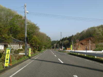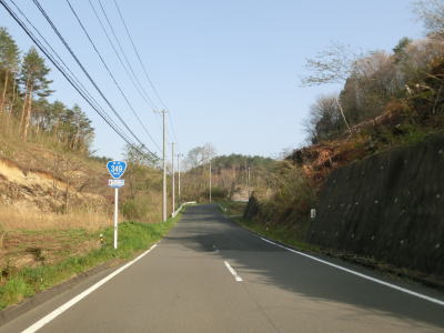 | 9.5%の勾配を上った後にセンターラインがなくなり、左にカーブすると平田村に入る。町村境の直後こそセンターラインがあるがすぐになくなり、大きく左にカーブした先で再びセンターラインが現れる。古殿町と平田村の境を含む区間はバイパス工事が進行中であり、開通すれば古殿町側の急勾配・急カーブをパスできるようになる。とは言うものの2.0車線程度は確保されているのでさほど走りにくい道路状況ではない。 平田川に沿って北上していると福島r285交差点を通過する。ちなみに平田川は阿武隈水系であり、福島県・宮城県境付近ではR349が阿武隈川沿いを走っており、終点の交差点は阿武隈川の河口からさほど離れていない位置にある。 |