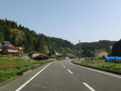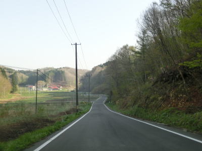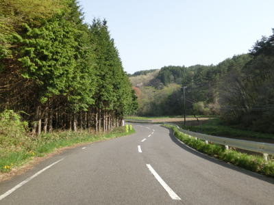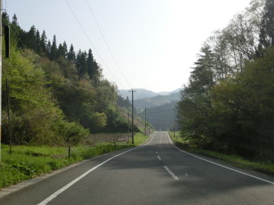 | 緩やかなカーブとアップダウンを繰り返しながら1.8車線幅の道路を走る。規模の小さな集落をいくつか通り抜けており、風景は非常に長閑である。狭路ではあるが交通量が少なく走りにくさはあまり感じない。 | ||