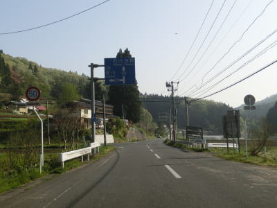 | いくつかの村道と交差しながら、いくつもの集落を通り過ぎながら少々狭い道路を淡々と北上する。山間部だがなだらかな高原のような地形のため勾配は緩やかである。カーブが多いが急なものは少ない。大竹集落は急カーブながらセンターライン付きの2車線道路で通過する。 | ||