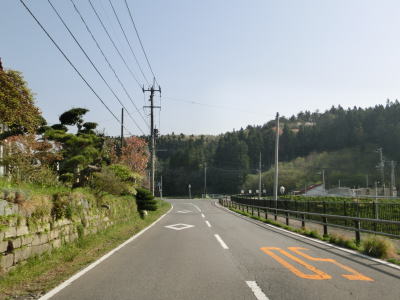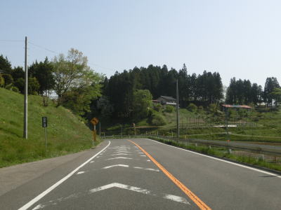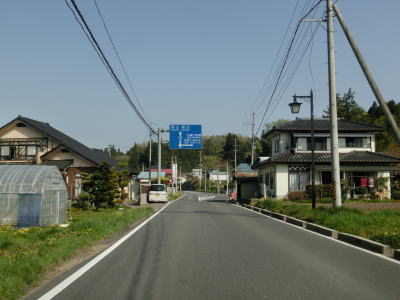 | 舘柄前交差点から約9.2km走ると二本松市に入るが、道路状況や周辺の風景に変化はなく走りやすい2車線道路を快走する。まだ新しい舗装の区間を通るが、歩道が設置されたようである。 | ||