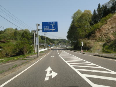 | R459大久保交差点からも走りやすい2車線道路が続いている。非常に緩やかな勾配を上っていると福島r303交差点を通過し、約1.9km走るとr303が二本松方面に分岐する。案内標識には二本松としか表記されてないが、平成の大合併で東和町が二本松市になったのが反映されていないのだろう。 | ||