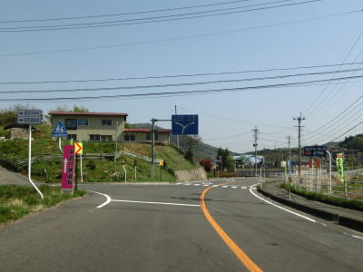 | 川俣町に入ってからは緩やかな勾配を下る。工事中の大綱木バイパスの接続予定地点を過ぎると2車線道路ではあるもののやや急なカーブが連続する道路状況になる。篭ノ作南林道との交差点を通過してすぐに左の急カーブがある。 | ||