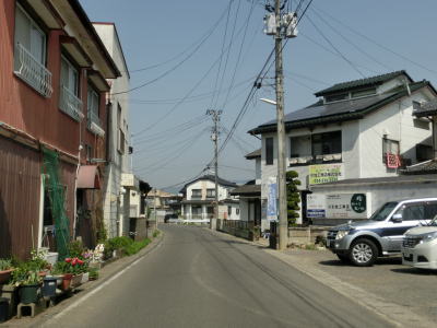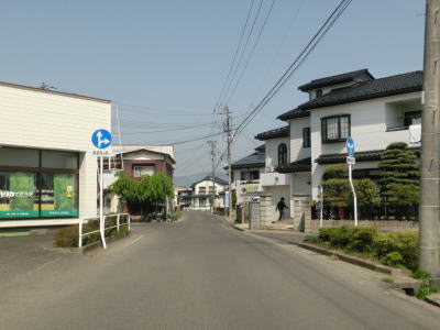 | 市道との交差点を過ぎるとセンターラインはないものの2.0車線幅程度の道幅は確保されている。しかし、100m強進んだ所で市道とのY字路を通過し、ここからは西向き一方通行区間となる。交差している市道が東向き一方通行となっているが、そちらは国道に指定されていないため、R349の車両でのトレースは起点の水戸市から終点の柴田町方向でしかできいない。重複しているR399も同様で、起点のいわき市から終点の南陽市方向でしかトレースできない。 | ||