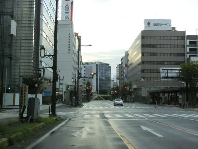 | 新潟市役所と新潟駅の間に位置する本町交差点がR350の起点である。交差点の北に接続している新潟r565から見ると、新潟駅方面にR7、新潟市役所方面にR116の2本の国道の交差点に見えるが、実はR7・R8・R17・R113・R116・R289・R350・R402と合計8本もの国道が交差しており、それぞれが起点もしくは終点となっている。 R350は東に向かうが、R7だけでなくR8とR17、R113が重複している。左端車線だけが少し狭い6車線道路を走っていると緩やかな右カーブを曲がって緩やかな勾配を上って萬代橋を渡る。橋の手前でバス優先の左端車線がなくなる。 |