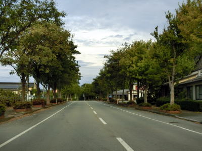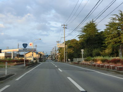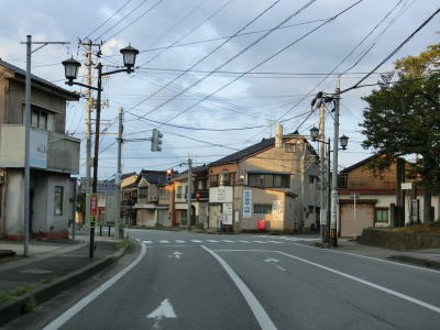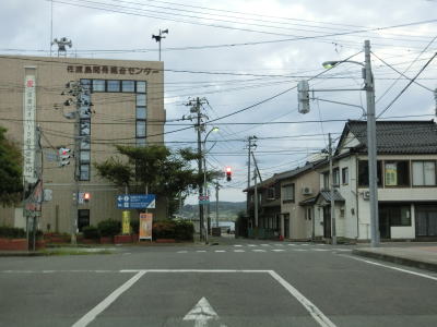 | 佐渡市の中心部に近付くと沿線の建物が増えるが密集しているというほどではない。市役所の北で新潟r306千種交差点を左折して畑野・佐渡市役所方面に進む。直進のr306相川・窪田方面は旧道である。 | ||