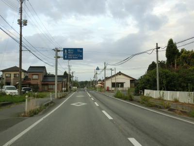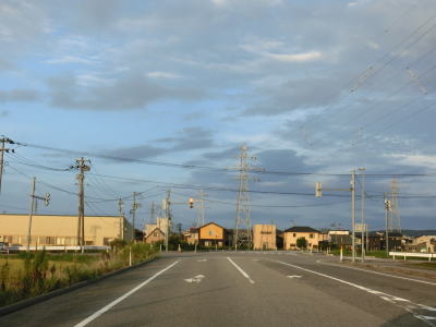 | 新潟r381交差点を右折しても緩やかな上り勾配が続き、新中津川橋から下り勾配になる。右カーブを曲がり終えると平坦な直線道路で水田の間を走り抜ける。新潟r194との交差点を通過してからも快走路は続いており、旧佐和田町の中心部の手前で広域農道らしき2車線の道路との交差点を通過する。 | ||
