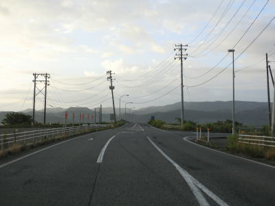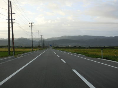 | 早朝のため交通量の少ない2車線道路を快走していると大佐渡スカイラインとのスカイライン入口交差点を通過する。白雲台を境に南側は防衛省が管理している道路だが、一般車両の通行も可能である。西側は新潟r463に指定されており麓近くに佐渡金山跡がある。 | ||
