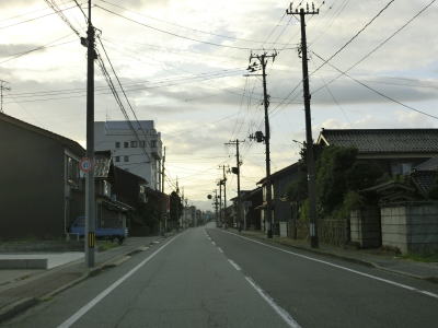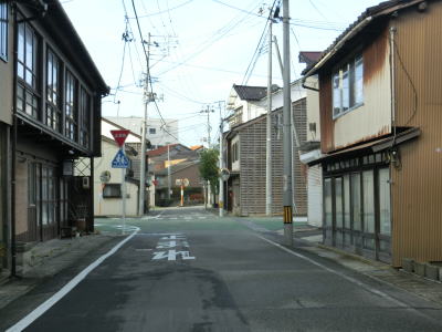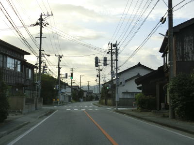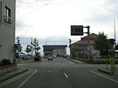 | 引き続き家屋が建ち並ぶ間を走っていると旧真野町の中心部に差し掛かり、新潟r65新町交差点を通過する。交差点の南にある真野行政サービスセンターがかつての町役場である。 | ||