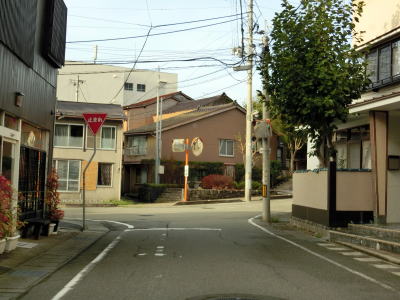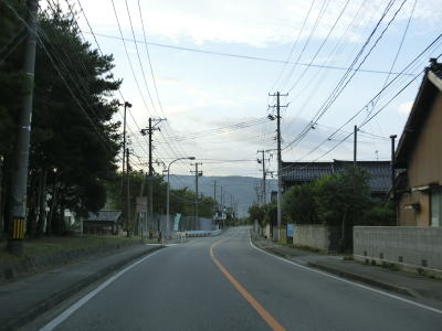 | 家屋が建ち並ぶ間を走っていると新潟r194交差点を通過する。国仲バイパスとの交差点が終点でこちらが起点である。r194交差点を過ぎると国府橋を渡って右の急カーブを曲がる。 | ||