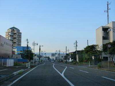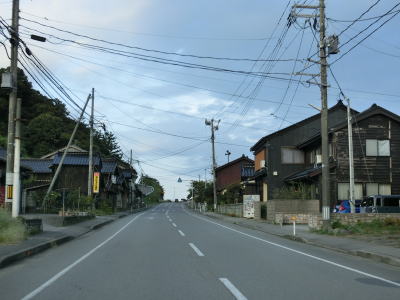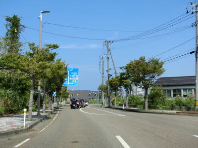 | 新潟r45窪田交差点からは家屋が建ち並んだ中を走る。狭いながらも歩道が設置されており決して走りにくい道路状況ではないが、海岸線沿いを並走している市道の方が走りやすい。約1.3km走ると市道とのT字路に突き当たり、左折した直後の交差点を道なりに右折する。最初のT字路は左折しかできないが、2ヶ所目の交差点は大型貨物車等を除いて直進は可能である。逆方向に走っていれば最初の右折はできないが、2ヶ所目の右折は可能なため国道をトレースできる。 | ||