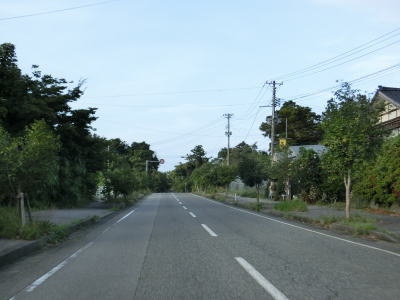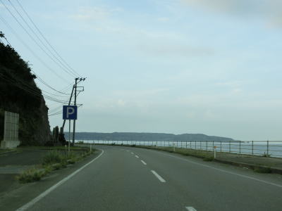 | 上り勾配になった後に左カーブを曲がると海岸線から離れ、以降は標高50m程度の少し高い位置を走る。海から数百メートル離れているが、海側に何もなければ海面が見える場所もある。 | ||