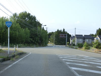 | 新潟r45交差点からも1.5車線幅道路を走り、100m弱で市道とのT字路に突き当たる。ここには案内標識が設置されており左折である事が分かる。この交差点から数十メートル先の十字路がR350の小木港側の端点である。直進は臨港道路小木1号線であり、道なりに走ると小木港を経てR350に戻る。 | ||