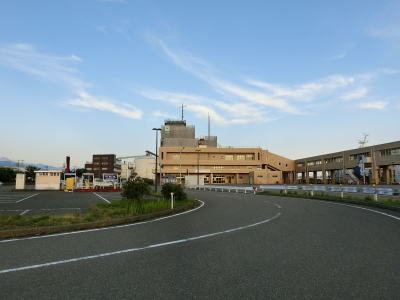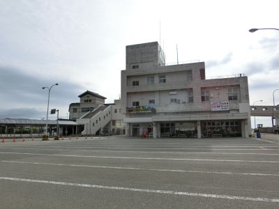 | 小木港のフェリーターミナルへは端点を直進して左カーブを曲がり、4車線になった後の交差点を右折する。フェリーに乗船しない一般車両はさらに奥の交差点を右折する。フェリー乗船待機場は番号の若い順に停めるケースが多いが、ここでは番号の大きなレーンから停めるように指示された。切符売場は1号レーンの傍の建物の2階である。1階は待合室のようだったが閉鎖されており使われていない。入口の右手にR350が国道である事を示すものが取り付けられている。形状が正方形のためか、スマートフォンで取るとQRコードと勘違いしたのか上下の余白部分が切り取られた写真になってしまった。 小木港と直江津港を結ぶフェリーは2往復と少ない。3連休の初日のため午後の便だと人が多い事を予想して午前の便を予約。乗船する車両は昨日の新潟港から両津港よりも多く、直江津港を7:00に出発した便から降りている車は非常に多かった。10:25定刻通り出発、13:05定刻通りに到着。新潟港〜両津港よりも10分長い1時間40分の航海である。 |