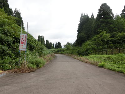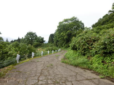 | 約30kmの迂回を経て長岡市種苧原側の端点に到着する。ウオッちずでは前回(2012年10月)は四季の里古志の少し北の十字路が端点となっていたが、今回改めて確認するとさらに北西に2.4km進んだ所まで国道色に塗られていた。端点まで行って同じルートで走行を再開するのは芸がないと思って前ページに記載したとおり、風口峠から北に向かって猿倉岳の東を通るルートを選択した。新潟r24から風口峠は1.0車線幅ながら舗装されており難なく通行できた。風口峠〜天空のブナ林の手前までは1.0車線幅のダート路でここもゆっくり走れば問題なく通行できた。天空のブナ林を過ぎると路面状況が悪化してそれまで以上に慎重に走らなければならなくなる。萱峠牧場の南端からはさらに路面状況が悪化して普通車で走るのを躊躇うような状態。引き返そうと思ったが、端点まで1km程度なので意を決して進行。結果として何とかたどり着けたが2度走ろうという気にはならない。ガレている場所がなかったため普通車でも通れたが、迂回ルートとしてはお勧めしない。オフロード車だと4輪2輪を問わず楽しめる道かもしれない。 | ||