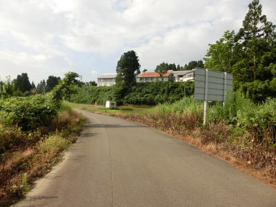 | かつて端点だった十字路からは道幅は2.0車線とこれまでに比べて広くなる。緩やかな勾配を下っていると萱峠トンネルに関する看板の脇を通過する。この看板は少なくとも2012年10月には立っていた。その後は1.8車線と少し狭くなった道路を緩やかに下って行くと右急カーブを曲がって上村集落に差し掛かる。 | ||