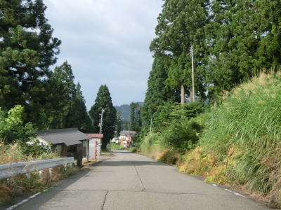 | 広神ダム以南も下り勾配が続いている。古峰シェルターを出ると周辺の家屋が多くなる。ウオッちずでは古峰シェルターの南に県道が交差しているが、現地には案内標識もソトバもなく、県道扱いしている地図も確認できなかったため路線番号は不明である。左カーブを曲がっていると新潟r563交差点を通過するが、前述のとおり車両が通行できるかどうか怪しい区間が存在している。 | ||