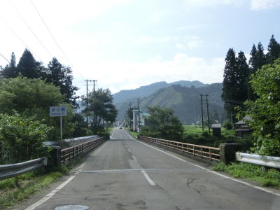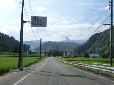 | やや急な左カーブを曲がって猿跳橋を渡る。センターラインが復活して下折立集落内を走っていると新潟r265折立温泉交差点を通過する。右折してr265を少し走ると温泉宿がいくつか建っているが温泉としての規模は小さい。 | ||