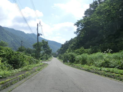 | 鷹ノ巣集落に入ってからも路上河川は存在している。集落と言っても冬季閉鎖区間のため定住者はおらず、閉鎖されていない時期にキャンプ場や宿泊施設が営業しているようである。集落から県境までは5km程度と魚沼市の中心部からは60km近く離れている。 | ||