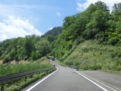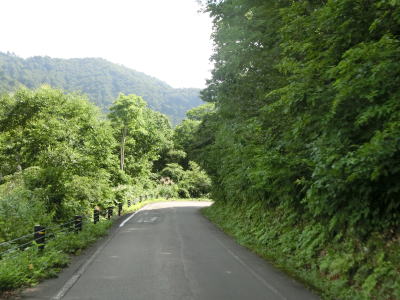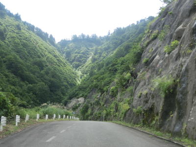 | 枝折峠の南側も1.5車線の狭路でありカーブは多いものの勾配は緩やかである。峠の駐車場に車は停まっていたもののすれ違ったり追い抜かれたりする事もなく交通量は極めて少ない。 | ||