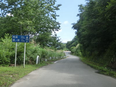 | 尾瀬まで39km。鷹ノ巣まで20kmという案内標識が設置されているが、鷹ノ巣は福島県魚沼市に属する集落で県境まで20kmもある事になる。枝折峠からは既に17kmほど走っており、酷道区間が長い事が実感できる。鬱蒼とした場所はほとんどないため景色の変化を楽しむ事もできる。それ故、紅葉シーズンは交通量が増えてしまうだろう。 | ||