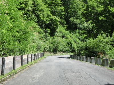 | 小沢平集落からしばらくは日が差し込みにくい場所も多いが、基本的には眺望の良い区間の方が多い。道幅は1.5〜1.8車線と新潟県側に比べると若干ではあるが広く感じる。また、新潟県側と同様に交通量は少ない。勾配が緩やかなため気付きにくいが標高は1500mを超えている。県境付近からの比高も500m以上と大きい。 | ||