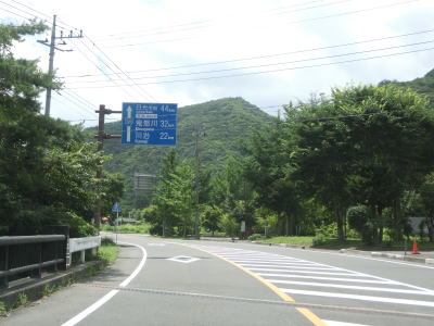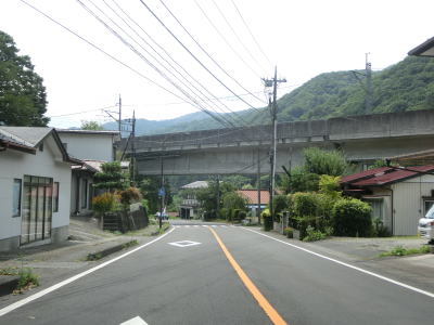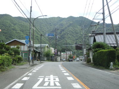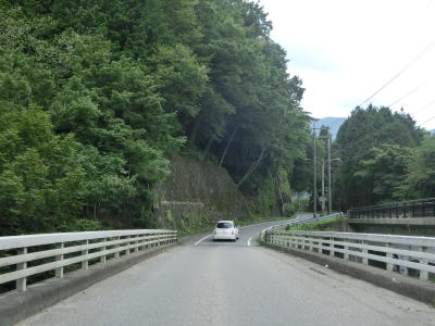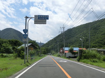 | 野岩鉄道の橋梁をくぐってからは沿線の家屋が途切れた谷筋を走る。その後、中三依集落を走っていると中三依橋の南詰で中三依温泉駅の出入口に当たる道路との交差点を通過する。駅にはロータリーが設置されているが、国道とロータリーの間の100m弱は県道に指定されていないようである。中三依橋以降は野岩鉄道とともに男鹿川の左岸を下って行く。 | ||