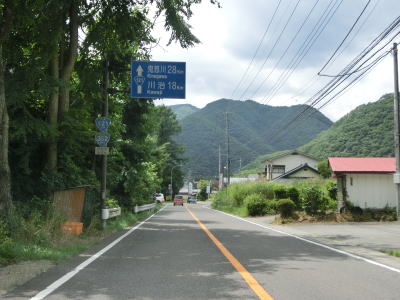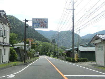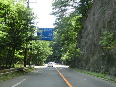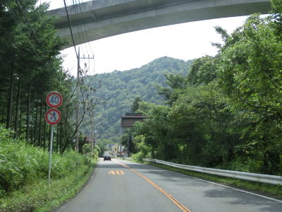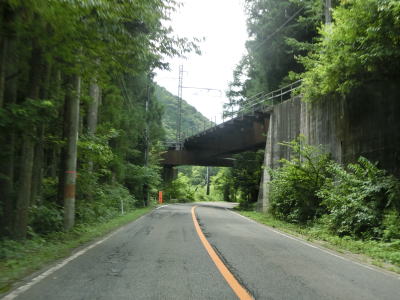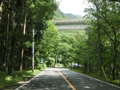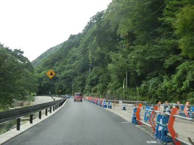 | 独鈷沢集落を過ぎると異常気象時通行規制区間に入る。区間延長は14.5kmなので川治温泉付近までであろう。規制値は連続雨量200mm超である。異常気象時通行規制区間は沿線に集落はなく男鹿川に沿ったカーブの多い状態になる。並走している野岩鉄道は橋梁とトンネルで直線的に造られており、結構な高さの橋梁の下をくぐる。 | ||