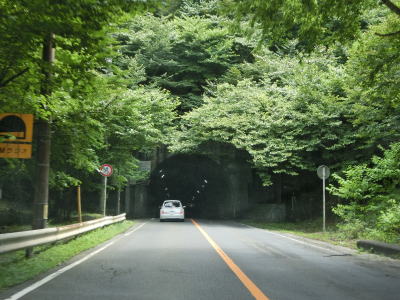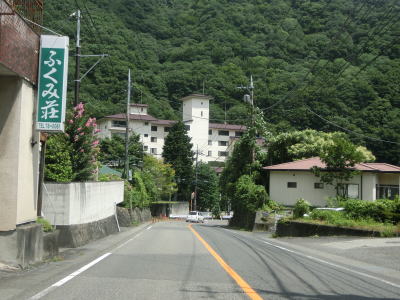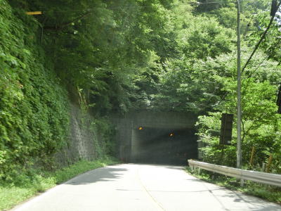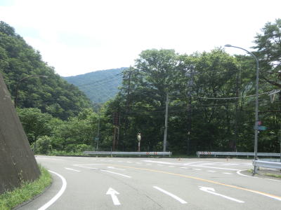 | 野岩鉄道の葛老山トンネルの上で左のヘアピンカーブを曲がると川治温泉街に差し掛かる。沿線に多く温泉宿が建っているが、斜面にあるため急カーブが多い。川治橋で男鹿川を渡ってからも急カーブが連続している。 | ||