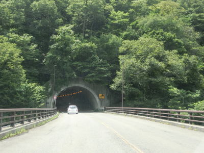 | 引き続き五十里湖の東岸を通る現道との交差点の直後に五十里海渡り大橋を渡って五十里岬トンネルをくぐる。さらに赤夕大橋を渡るとその南詰で栃木r249を通過する。右折してr249を200m程走ると道の駅「湯西川」がある。さらに西に進むと湯西川温泉もある。r249交差点の直後には湯ノ郷トンネルをくぐり、五十里湖に沿って走っていると現道と合流する。R121走行時は現道を走ったが、今回はバイパスを走っている。なぜなら現道は通行止になっていたからである。バイパスが通行できる以上、わざわざ復旧させる必要もないためこのまま規制が解除されない可能性もある。 | ||