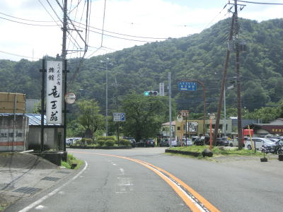 | 栃木r19交差点からは下り勾配のヘアピンカーブを曲がってr19の下をくぐり、大きく右にカーブして進行方角を180度変えた後にもみじ大橋の下をくぐる。その先の左カーブ付近に龍王峡駅があり、駅前には複数の土産物店や食事処があるため賑わっていた。 | ||